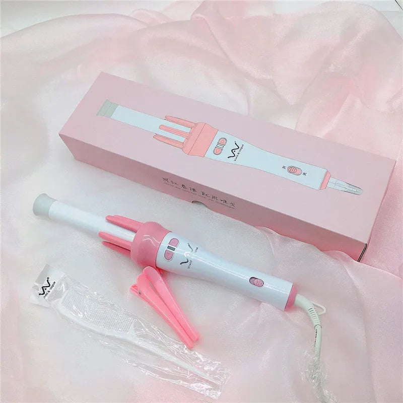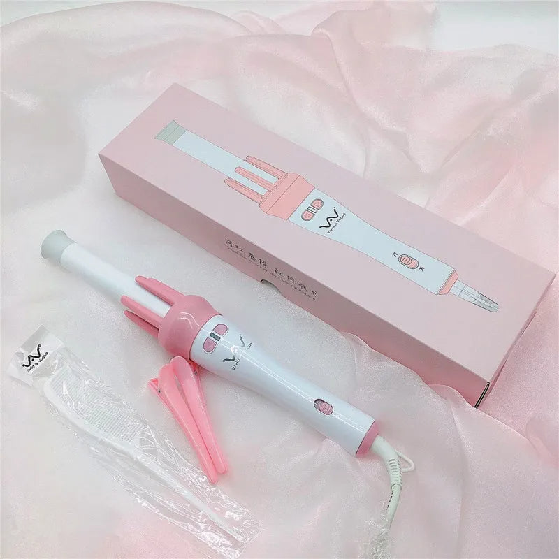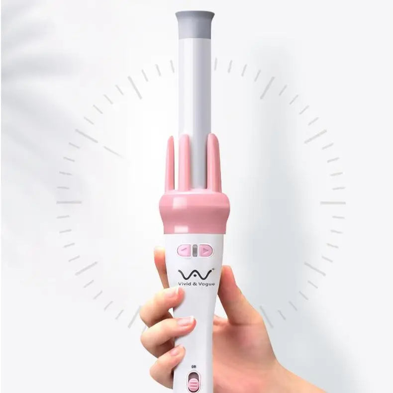 The Vivid&Vogue Original Automatic Hair Curlers VAV-022B Pink 110V-220V easily and efficiently curls hair by automatically turning the curling iron in both directions. Enjoy effortless styling with this user-friendly tool.